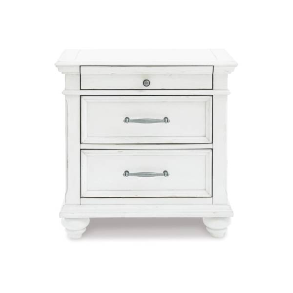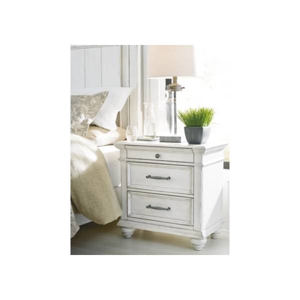 Bring timeless elegance and vintage charm to your bedroom with the Kanwyn Three Drawer Nightstand, available exclusively at Teletime. Thoughtfully designed to blend rustic character with practical functionality, this nightstand is a perfect addition to any cozy bedroom retreat. Finished in a beautifully distressed whitewash, it exudes the warm appeal of a quaint cottage getaway while offering ample storage for your nighttime essentials.