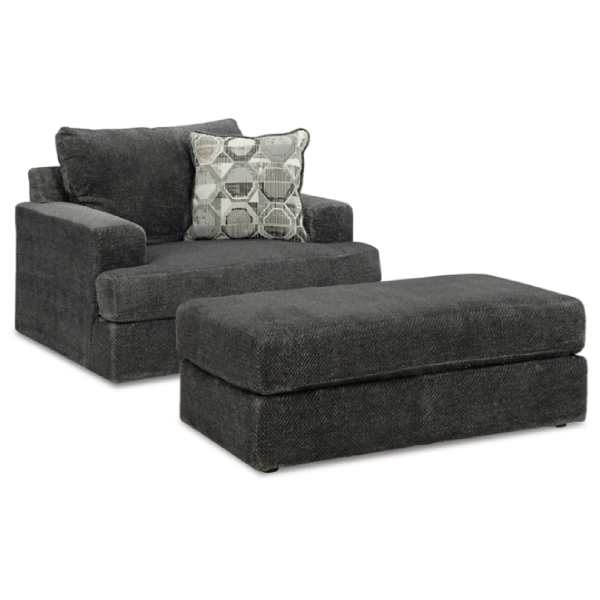 The Karinne Chair and Ottoman set brings casual refinement to your living space with a perfect balance of contemporary style and everyday comfort. Designed with a modern silhouette, the oversized chair features a deep seat and plush cushioning, wrapped in an ultra-soft neutral fabric that effortlessly brightens any room. A chic accent pillow, combining solid and geometric patterns, enhances the cozy yet sophisticated appeal.