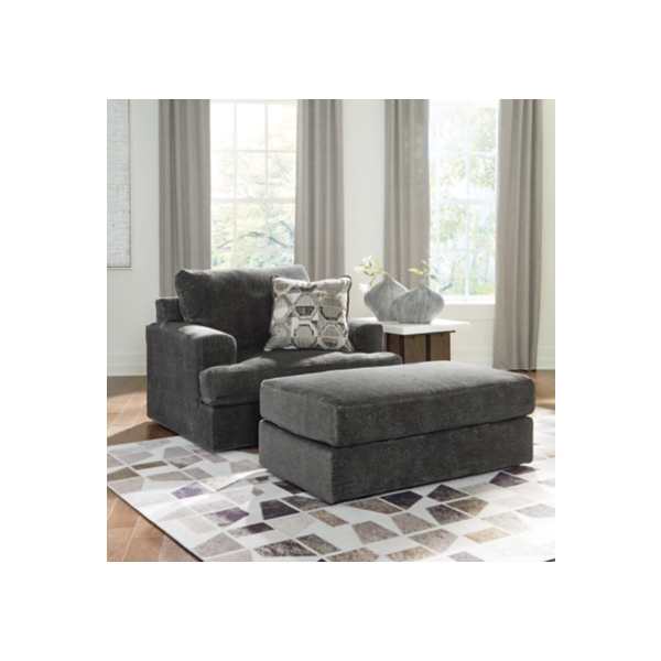 Built with durability in mind, the chair boasts a corner-blocked frame and a platform foundation system that resists sagging three times better than traditional spring systems, maintaining a smooth and wrinkle-free look over time. The generously sized ottoman complements the chair with firm cushioning, making it an ideal spot to rest your feet or serve as extra seating when needed.