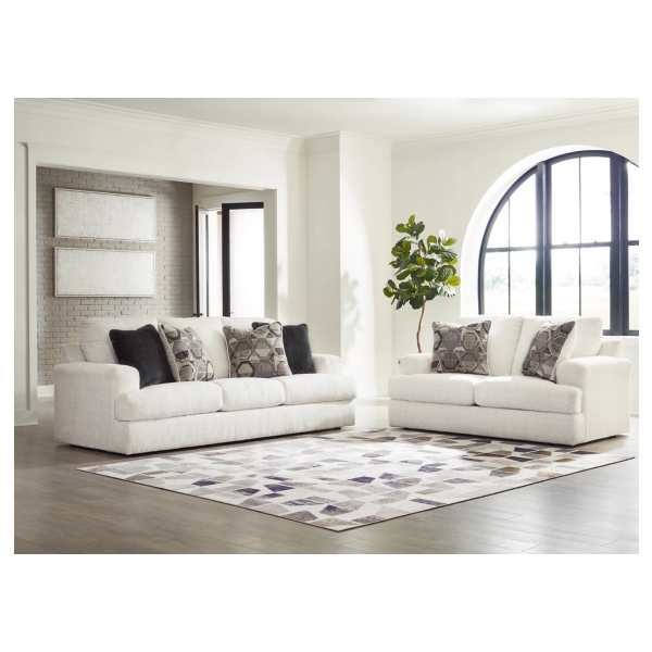 The reinforced frame construction ensures long-lasting durability and stability, making the Karinne Sofa and Loveseat a reliable investment for any home. The sturdy build supports daily use while maintaining its elegant appearance.