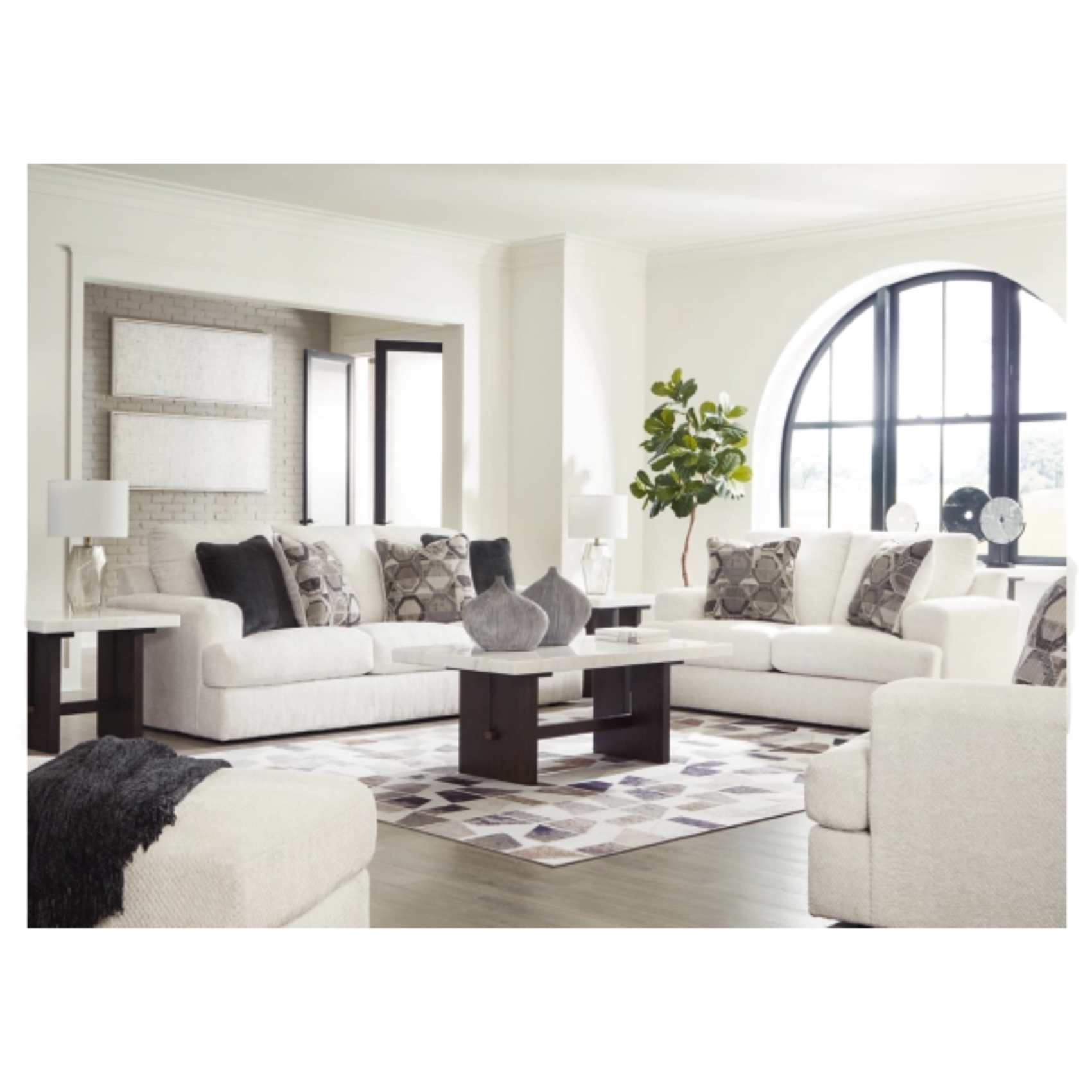 The Karinne Sofa, Loveseat, Chair, and Ottoman set (SKU - PKG015017) represents the perfect fusion of modern design and enduring comfort. Designed for today’s dynamic living spaces, every piece in the set is meticulously crafted to deliver both aesthetic appeal and practical functionality. With clean lines, structured silhouettes, and a soft neutral upholstery, this collection offers an inviting look that enhances any interior décor. The subtle geometric accents and refined details add sophistication, making this set suitable for both contemporary and transitional settings.