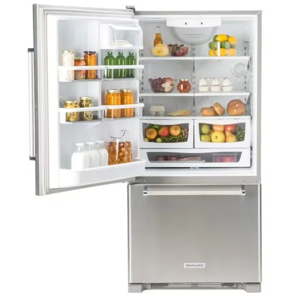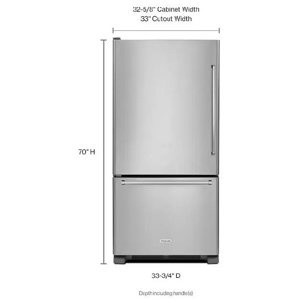 KitchenAid KRBL102ESS Bottom Freezer Refrigerator, 33-Inch Width, ENERGY STAR Certified, 22.1 cu. ft. Capacity, Stainless Steel