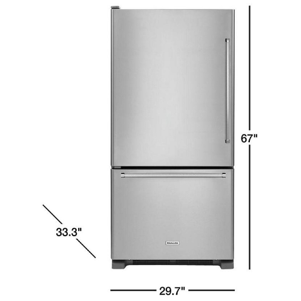 KitchenAid KRBL109ESS Bottom Freezer Refrigerator, 30-inch Width, ENERGY STAR Certified, 18.7 cu. ft. Capacity, Stainless Steel