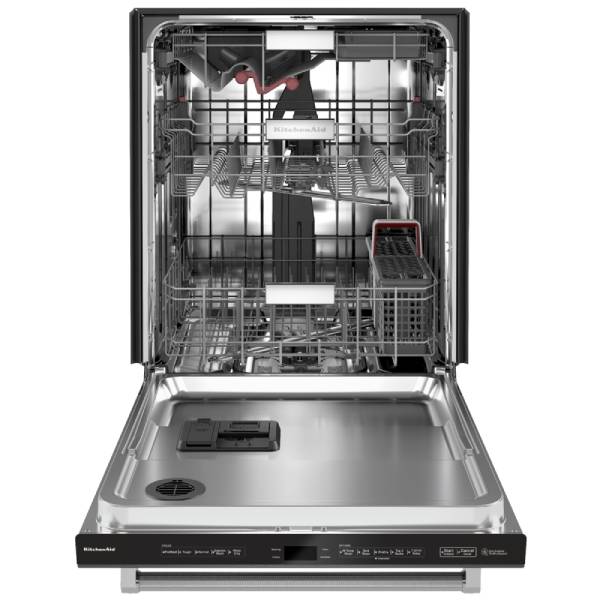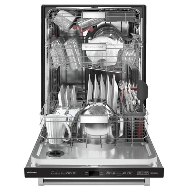 KitchenAid KDTM604KBS Dishwasher, 24 inch Exterior Width, 44 dB Decibel Level, Fully Integrated, Stainless Steel (Interior), 5 Wash Cycles, 16 Capacity (Place Settings), Black Stainless Steel colour Clean Water Wash System, FreeFlex Third Rack, SatinGlide Racks