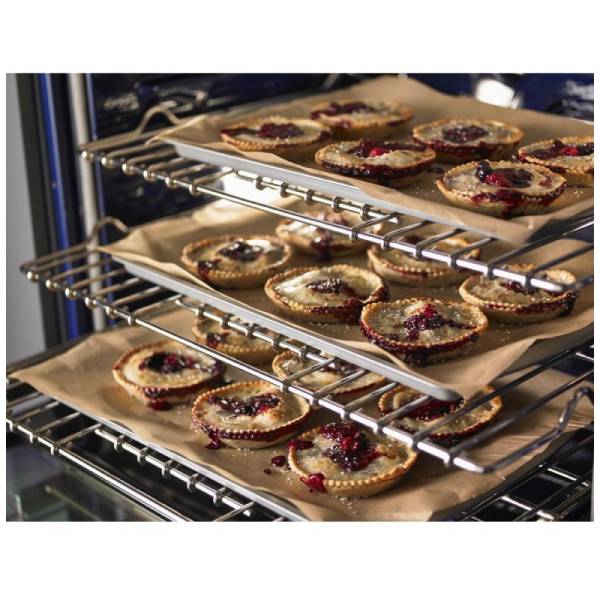 Each oven boasts a generous 5.0 cu. ft. capacity, perfect for hosting large family dinners or preparing multiple dishes simultaneously. Whether it’s a turkey, roast, or a variety of baked goods, this double wall oven is designed to handle it all. The EasyConvect™ Conversion System takes the guesswork out of convection cooking, ensuring flawless results every time, whether you’re trying a new recipe or revisiting a family favorite.