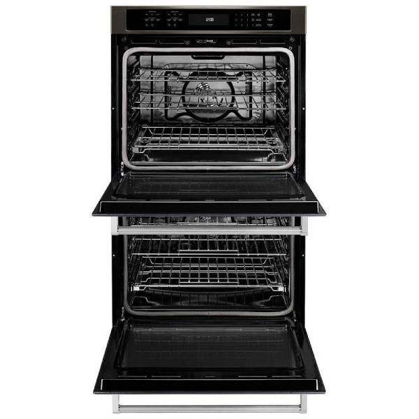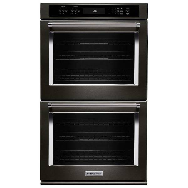KitchenAid KODE500EBS Double Wall Oven, 30 inch Exterior Width, Both Ovens Convection, Both Ovens Self Clean, 10.0 cu. ft. Capacity, Temperature Probe, Black Stainless colour True European Convection, Telescopic Gliding Extension Rack