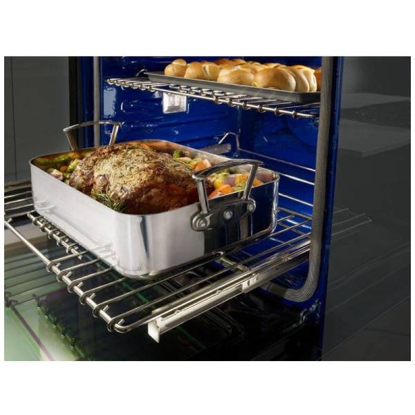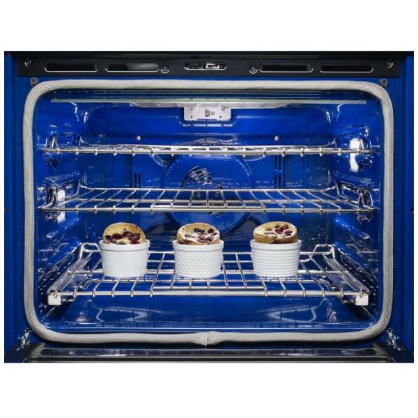 With two spacious 5.0 cu. ft. oven cavities, you can prepare multiple dishes simultaneously at different temperatures, making it ideal for large meals or entertaining guests. The built-in temperature probe guarantees that meats, poultry, and casseroles reach the perfect internal temperature without having to open the oven door, ensuring precise and delicious results every time. And when it’s time to clean, the self-cleaning function takes the hassle out of maintenance, using high heat to convert spills and food particles into ash for easy wipe-away cleanup.