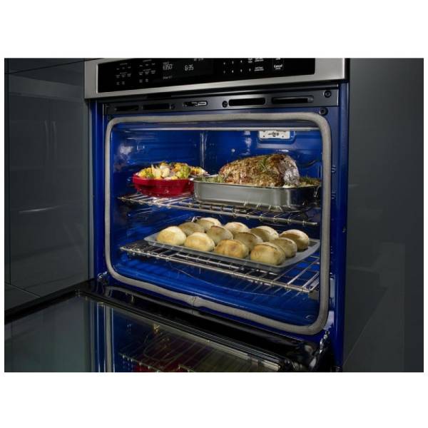 KitchenAid KODE507ESS Double Wall Oven, 27 inch Exterior Width, Both Ovens Convection, Both Ovens Self Clean, 8.6 cu. ft. Capacity, Temperature Probe, Stainless Steel colour True European Convection, Telescopic Gliding Extension Rack