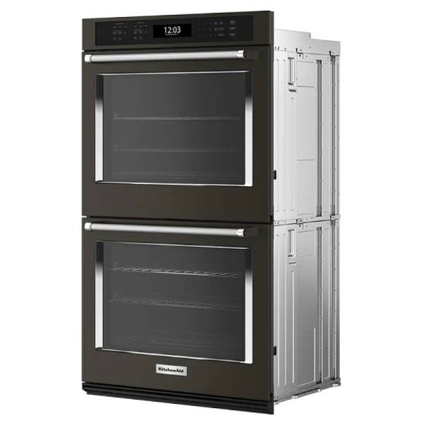 KitchenAid KOED527PBS Double Wall Oven, 27 inch Exterior Width, Convection, Self Clean, 8.6 cu. ft. Capacity, Black Stainless Steel colour Telescopic Gliding Extension Rack & True European Convection