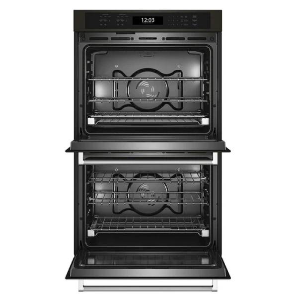 Transform your kitchen into a haven of culinary creativity with the KitchenAid KOED530PBS Double Wall Oven. This premium appliance, featuring a striking 30-inch black stainless steel exterior, is designed to offer both elegance and exceptional functionality. With an impressive 10 cu. ft. total capacity across both ovens, it gives you the freedom to cook multiple dishes simultaneously, making it perfect for hosting large gatherings or preparing elaborate meals.