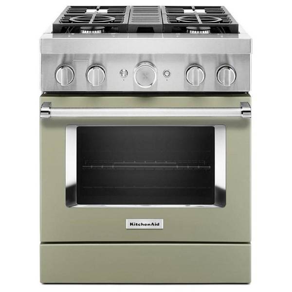 KitchenAid KFDC500JAV Dual Fuel Range, 30 inch Exterior Width, Self Clean, Convection, 4 Burners, 4.1 cu. ft. Capacity, 1 Ovens, Avocado Cream colour True European Convection, Temperature Probe