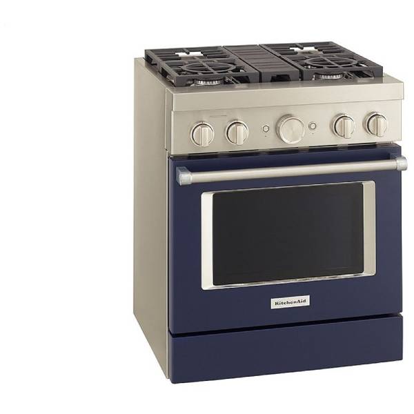KitchenAid KFDC500JIB Dual Fuel Range, 30 inch Exterior Width, Self Clean, Convection, 4 Burners, 4.1 cu. ft. Capacity, 1 Ovens, Ink Blue colour True European Convection, Telescopic Gliding Extension Rack, Temperature Probe