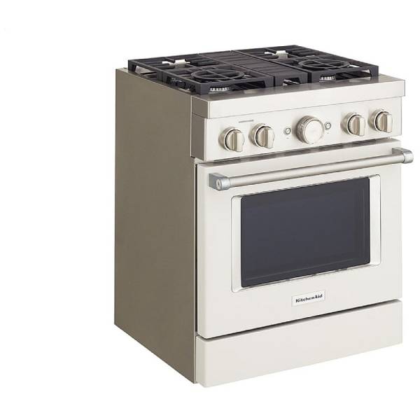 KitchenAid KFDC500JMH Dual Fuel Range, 30 inch Exterior Width, Self Clean, Convection, 4 Burners, 4.1 cu. ft. Capacity, 1 Ovens, Milk Shake colour True European Convection, Telescopic Gliding Extension Rack, Temperature Probe