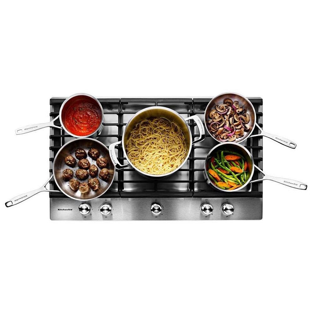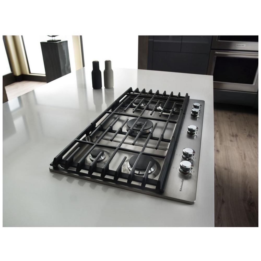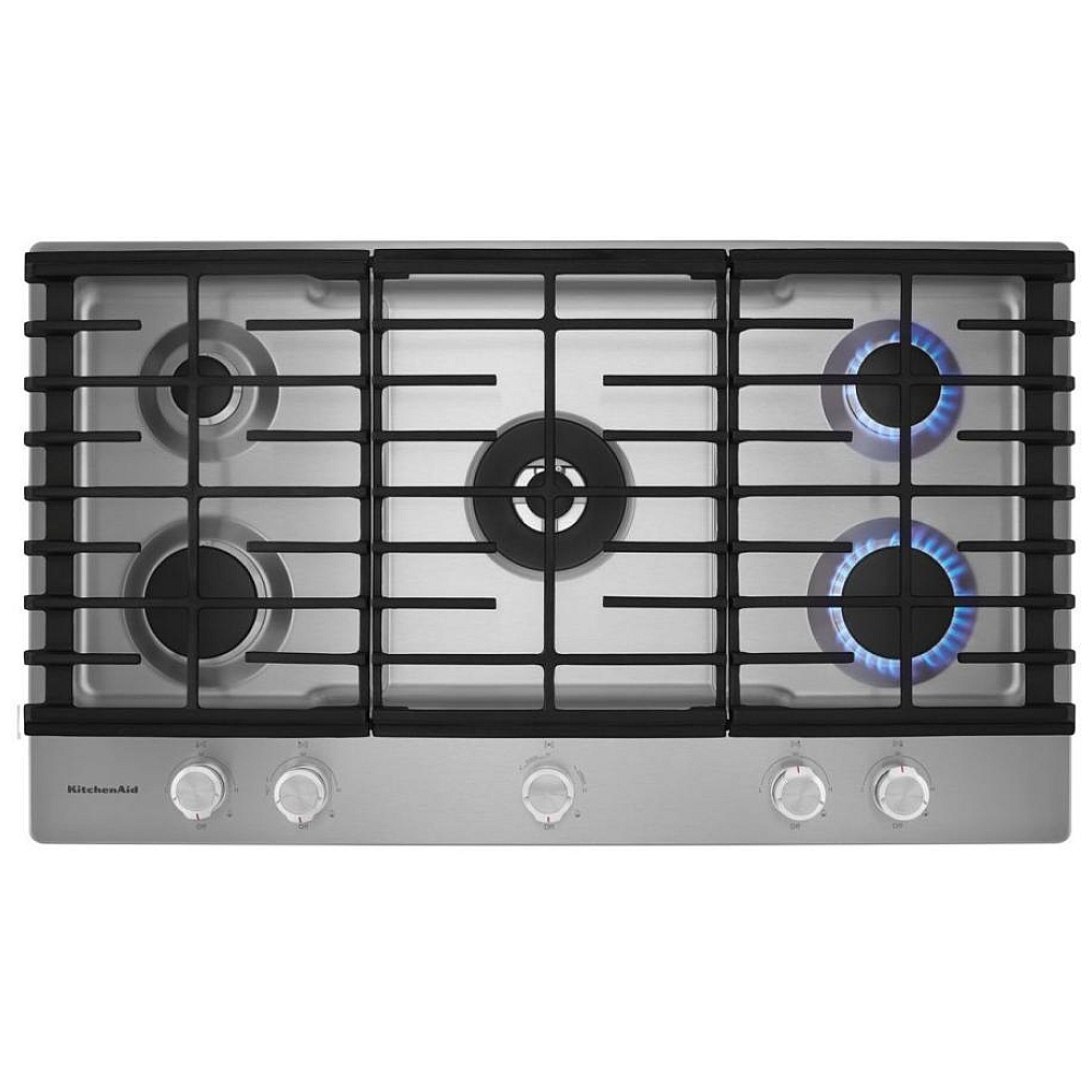 KitchenAid KCGS556ESS Gas Cooktop, 36 inch Exterior Width, 5 Burners, Stainless Steel colour
