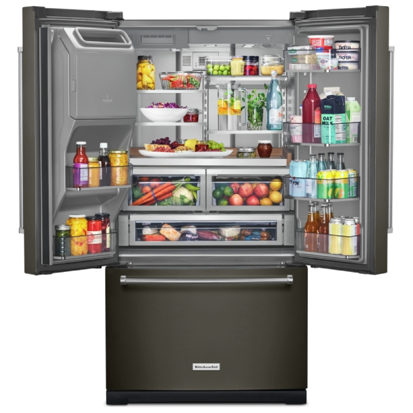 KitchenAid KRFF577KBS French Door Refrigerator, 36 inch Width, ENERGY STAR Certified, 26.8 cu. ft. Capacity, Black Stainless Steel colour ExtendFresh Temperature Management System