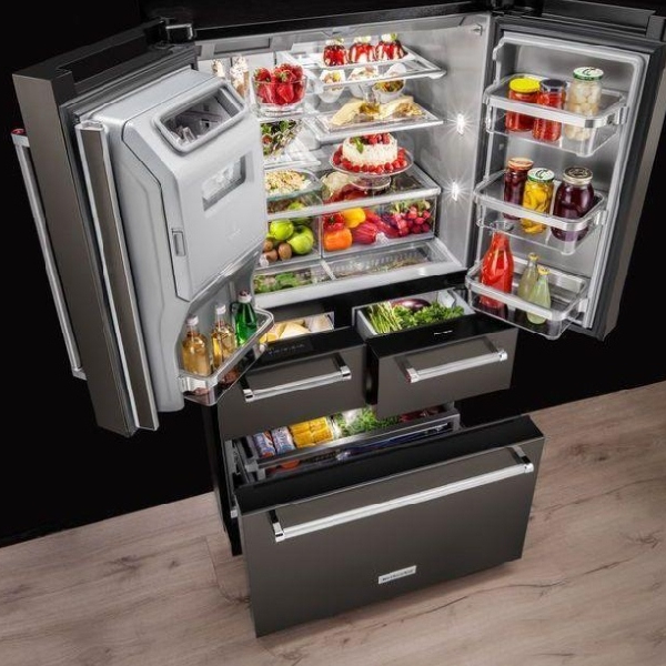 With Teletime's KitchenAid KRMF706EBS French Door Refrigerator, indulge in luxury, innovation, and performance that redefine the standard of modern kitchen appliances.