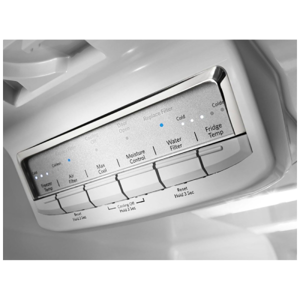An interior water dispenser provides easy access to filtered water, while LED lighting illuminates the interior for better visibility without using as much energy as incandescent bulbs. The Max Cool feature quickly chills groceries, beverages, or ingredients with the touch of a button.