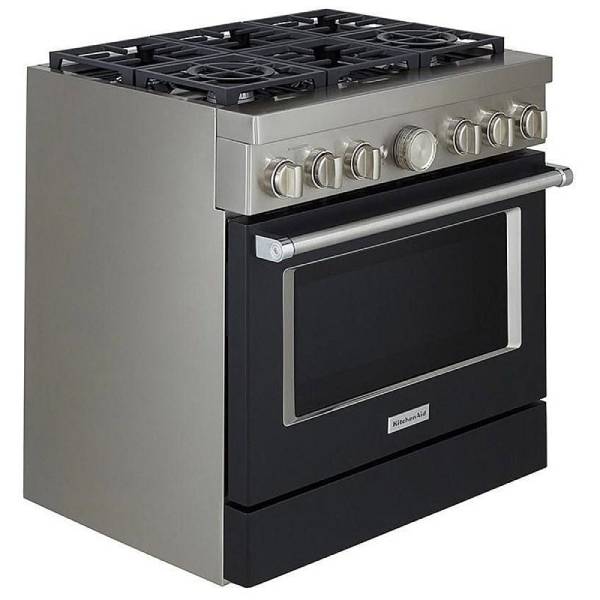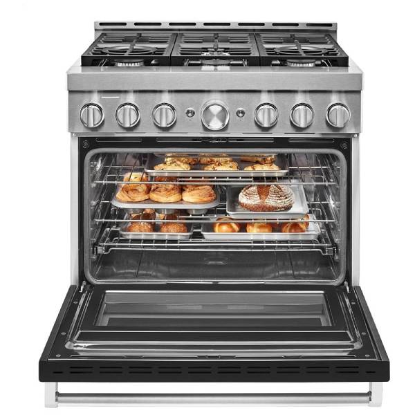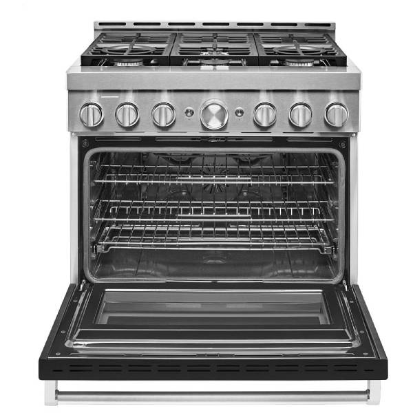 KitchenAid KFGC506JBK Gas Range, 36 inch Exterior Width, Self Clean, Convection, 6 Burners, 5.1 cu. ft. Capacity, 1 Ovens, Imperial Black colour True European Convection, Telescopic Gliding Extension Rack, Temperature Probe