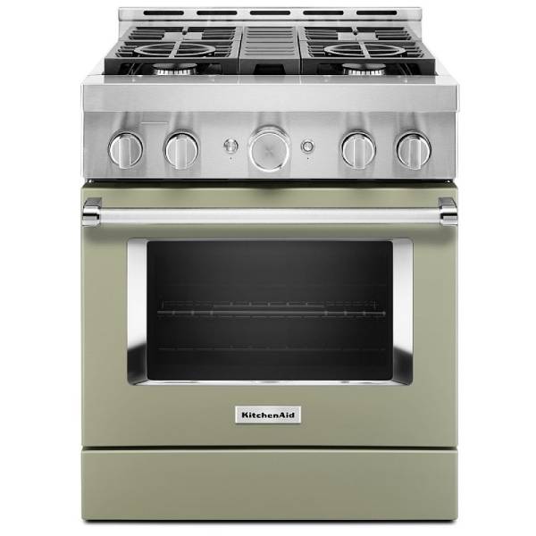 KitchenAid KFGC500JAV Gas Range, 30 inch Exterior Width, Self Clean, Convection, 4 Burners, 4.1 cu. ft. Capacity, 1 Ovens, Avocado Cream colour True European Convection