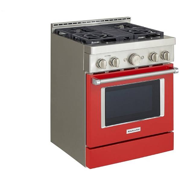 KitchenAid KFGC500JPA Gas Range, 30 inch Exterior Width, Self Clean, Convection, 4 Burners, 4.1 cu. ft. Capacity, 1 Ovens, Passion Red colour True European Convection