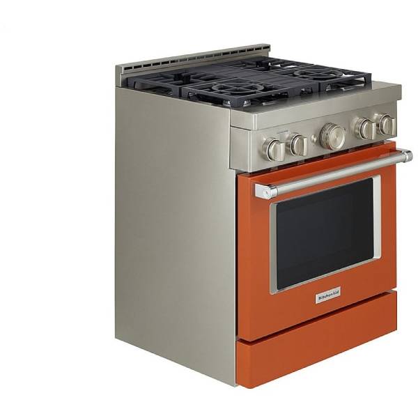 KitchenAid KFGC500JSC Gas Range, 30 inch Exterior Width, Self Clean, Convection, 4 Burners, 4.1 cu. ft. Capacity, 1 Ovens, Scorched Orange colour True European Convection