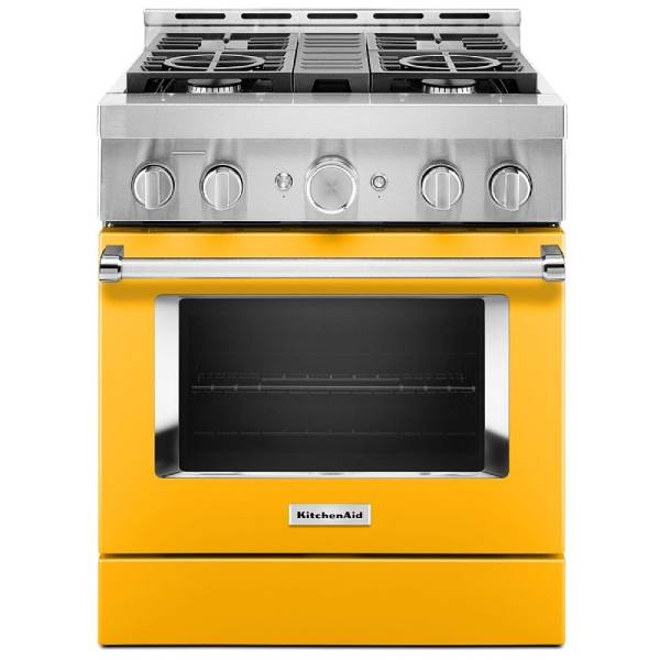KitchenAid KFGC500JYP Gas Range, 30 inch Exterior Width, Self Clean, Convection, 4 Burners, 4.1 cu. ft. Capacity, 1 Ovens, Yellow Pepper colour True European Convection
