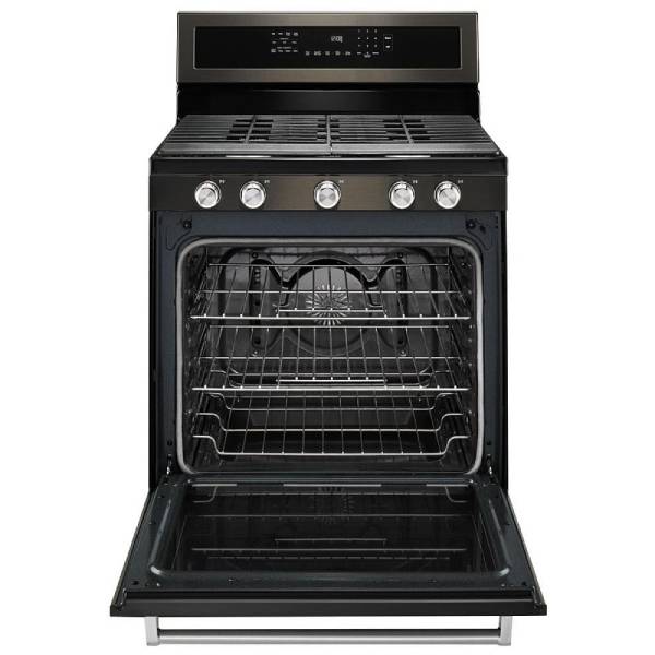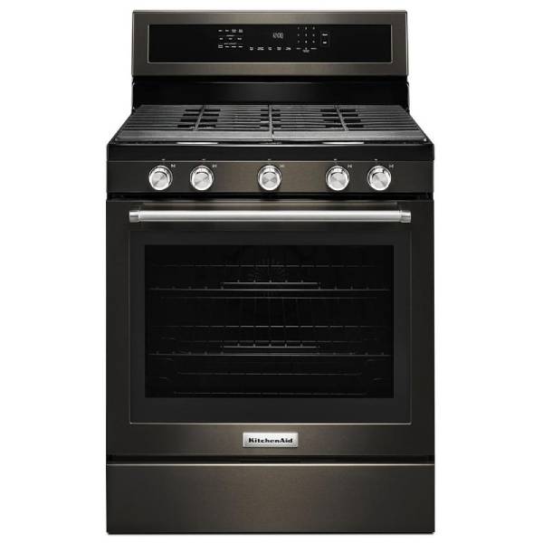 KitchenAid KFGG500EBS Gas Range, 30 inch Exterior Width, Self Clean, Convection, 5 Burners, 5.8 cu. ft. Capacity, Storage Drawer, 1 Ovens, Black Stainless Steel colour True European Convection
