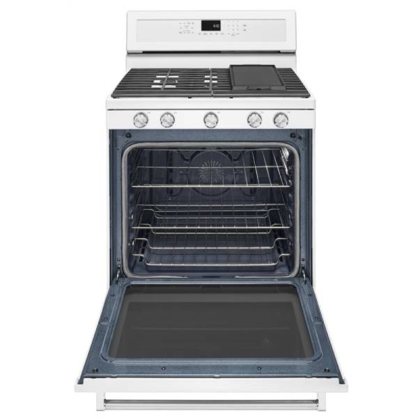With its stylish white finish and thoughtfully designed features, including a convenient storage drawer for pots and pans, the KitchenAid KFGG500EWH Gas Range not only elevates the look of your kitchen but also provides the power, versatility, and flexibility you need for all your cooking endeavors. Experience the perfect union of form and function with this remarkable gas range, available exclusively from Teletime.