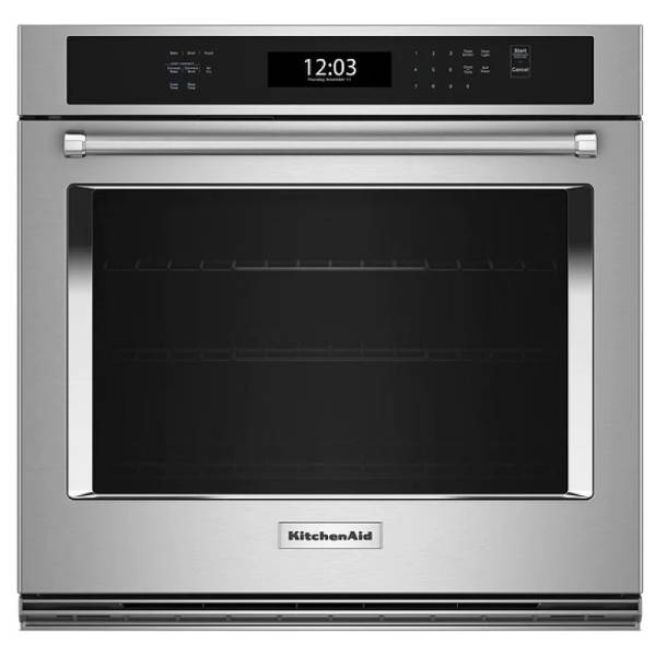 KitchenAid KOES527PSS Single Wall Oven, 27 inch Exterior Width, Convection, Self Clean, 4.3 cu. ft. Capacity, Wifi Enabled, Stainless Steel colour Telescopic Gliding Extension Rack, True European Convection