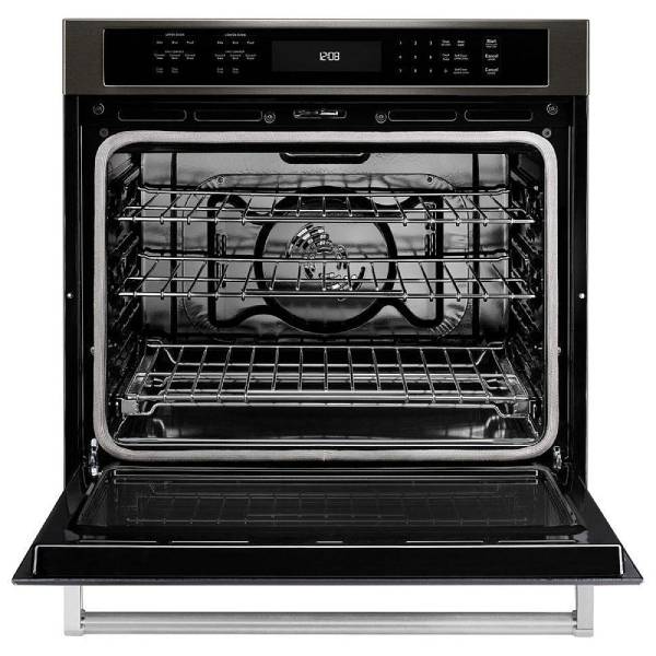 KitchenAid KOSE500EBS Single Wall Oven, 30 inch Exterior Width, Convection, Self Clean, 5.0 cu. ft. Capacity, Temperature Probe, Black Stainless colour True European Convection, Telescopic Gliding Extension Rack