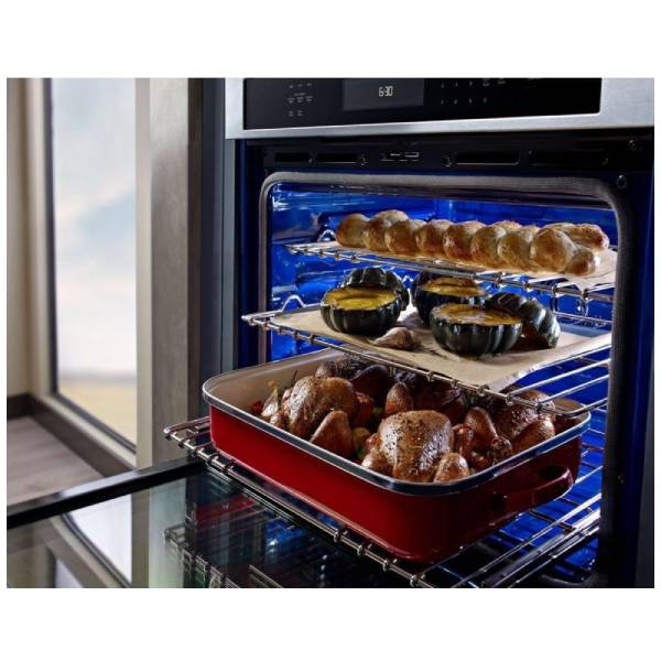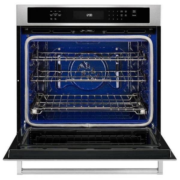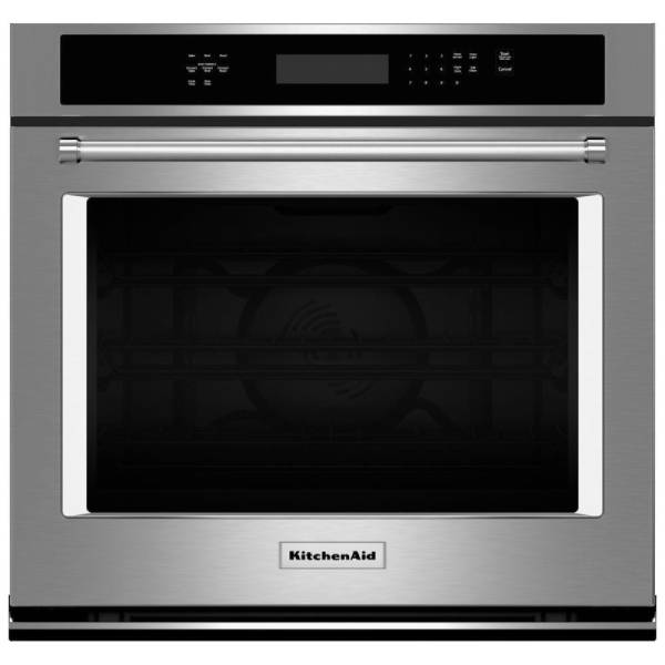 KitchenAid KOSE500ESS Single Wall Oven, 30 inch Exterior Width, Convection, Self Clean, 5.0 cu. ft. Capacity, Temperature Probe, Stainless Steel colour True European Convection, Telescopic Gliding Extension Rack