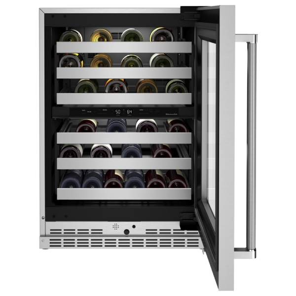 KitchenAid KUWR314KSS Under Counter Wine Refrigeration, 24 inch Width, 24 inch Width, 46 Wine Bottle Capacity, Stainless Steel colour Motion-Activated LED Lighting, Dual Zone