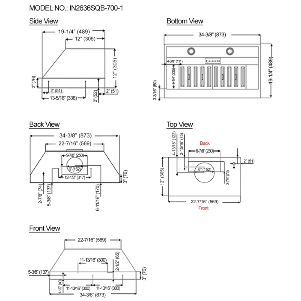 The KOBE Premium 36-inch built-in/insert range hood is designed to fit seamlessly with custom cabinetry, eliminating the need for a liner. Featuring a powerful 750 CFM internal blower, it operates quietly and efficiently. This range hood includes stainless steel baffle filters, versatile multi-exhaust options for both top and rear venting, and LED lights with 3-level lighting. With electronic button control and ECO Mode, it offers modern convenience and superior performance. A wireless remote control is available separately.