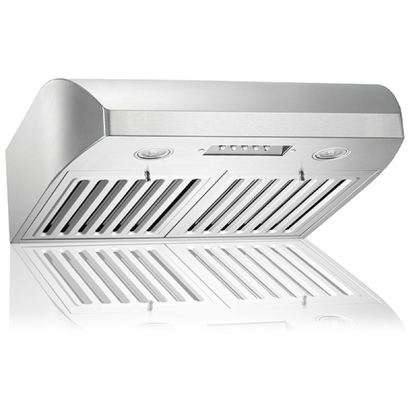 Kobe CHX2230SQB-1 Range Hood, 30 inch Exterior Width, Under-Cabinet, Under-Cabinet, 680 CFM, Outside / Ducting, LED, Dishwasher Safe Filters, Baffle Filter, Stainless Steel colour Blower Included