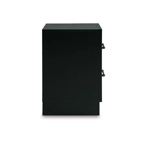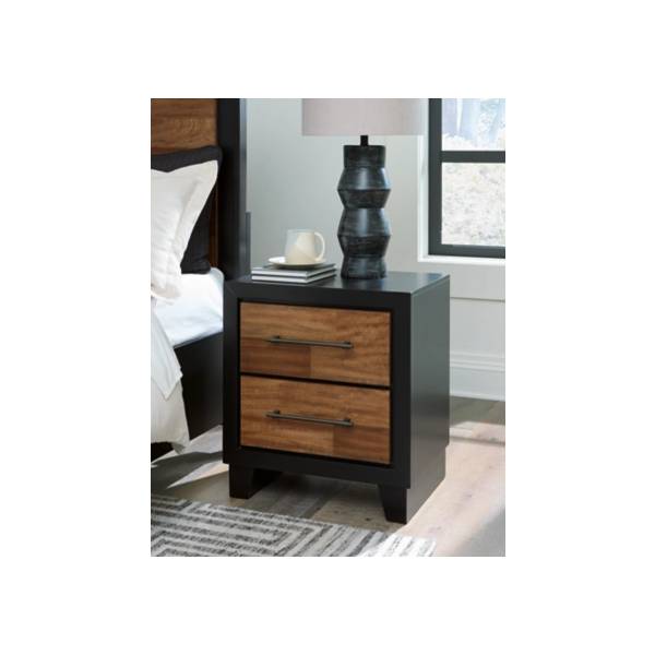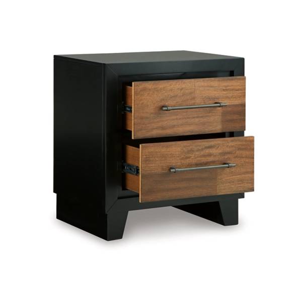 Bring modern sophistication and natural warmth to your bedroom with the Kraeburn Two Drawer Night Stand, available exclusively at Teletime. Designed to elevate your space with a perfect blend of casual elegance and refined craftsmanship, this nightstand features a striking two-tone finish—satin black beautifully contrasted with a rich brown wood tone. The result is a relaxed yet contemporary look that seamlessly complements today’s stylish interiors.
