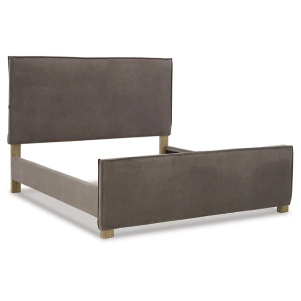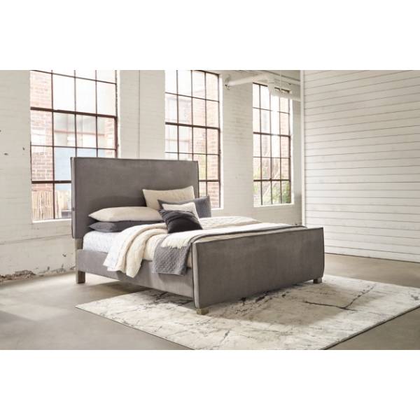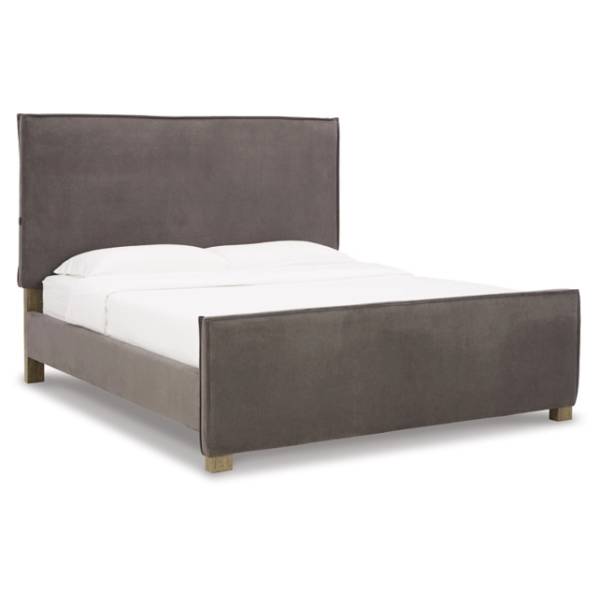 The Krystanza King Upholstered Panel Bed brings a touch of urban sophistication to your bedroom with its contemporary silhouette and sleek design. Its clean-lined profile, combined with tailored slate gray upholstery, creates a chic and modern look that seamlessly complements a variety of interior styles. A double flange welt around the perimeter adds an extra layer of refinement, enhancing the bed’s polished appearance.