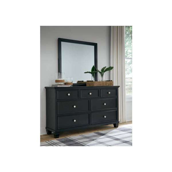 Timeless charm meets everyday functionality with the Lanolee Dresser and Mirror set, available at Teletime. Designed to bring a warm, relaxed aesthetic to your bedroom, this beautifully crafted piece blends classic detailing with a contemporary sensibility. The bold black painted finish makes a striking statement, while the framed drawer fronts add depth and character to its overall design.
