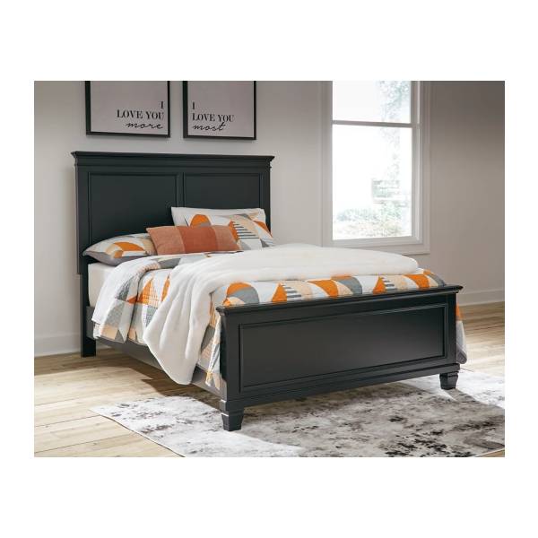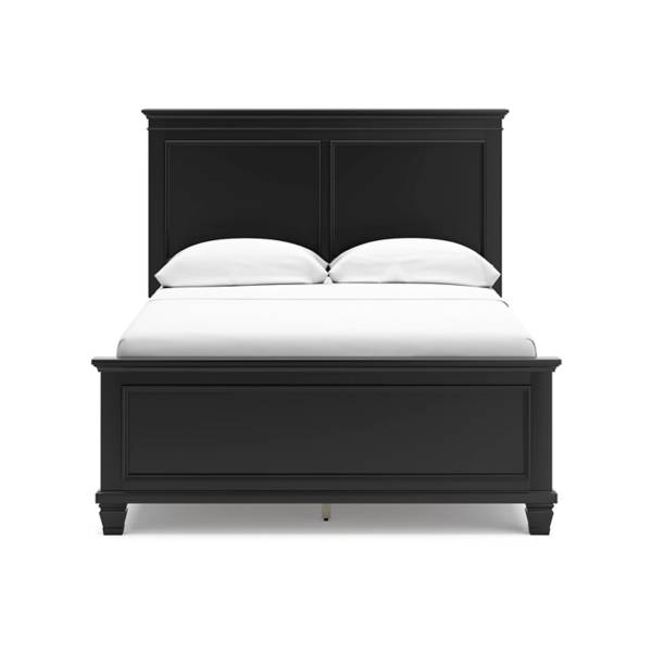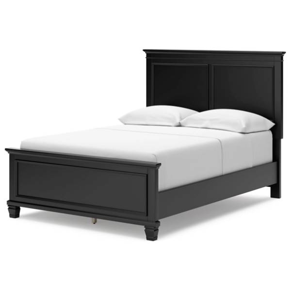 Made with durable hardwood solids, birch veneer, and MDF substrate, the Lanolee Full Panel Bed is built for lasting performance. The elegant black painted finish provides a contemporary edge, while the thick profiled tops and tapered feet bring a touch of refined charm. Designed for practicality, this bed requires a foundation or box spring (sold separately) and is compatible with an adjustable base for added convenience.