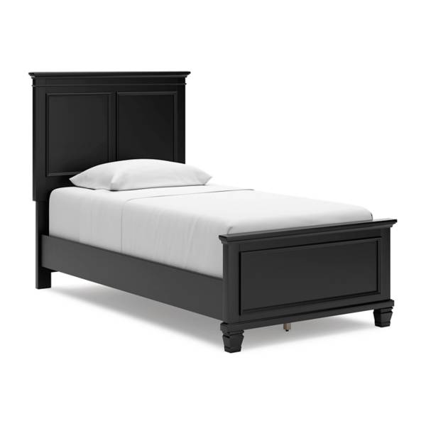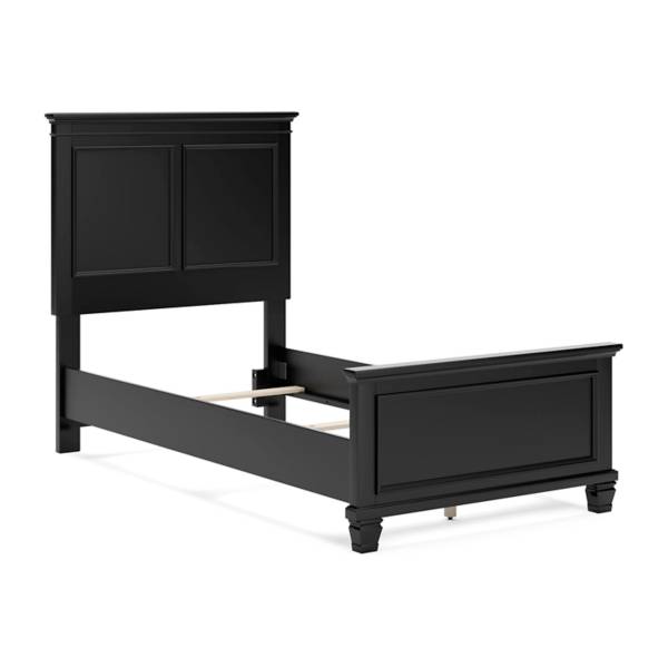 Constructed with durable hardwood solids, birch veneer, and MDF substrate, the Lanolee Twin Panel Bed is built to last. The black painted finish provides a sleek, contemporary touch, while the thick profiled tops and tapered feet add an extra layer of sophistication. Designed for practical use, this bed requires a foundation or box spring (sold separately) and can also accommodate an adjustable base, offering modern versatility.