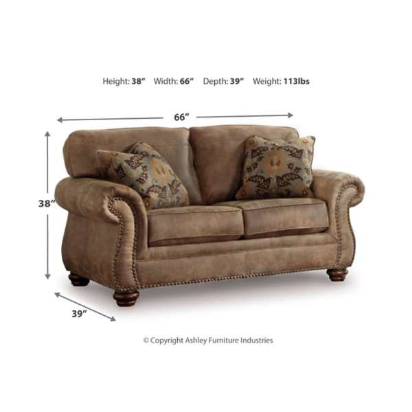 Functionality is a key hallmark of the Larkinhurst design. Its well-proportioned dimensions make it an excellent choice for both intimate seating arrangements and larger open-plan living areas. Whether positioned as a standalone accent in a cozy corner or integrated into a comprehensive seating ensemble, the Larkinhurst Loveseat adapts seamlessly to your spatial needs and lifestyle demands, providing a comfortable haven for quiet evenings, lively conversations, or even a dedicated work-from-home spot.