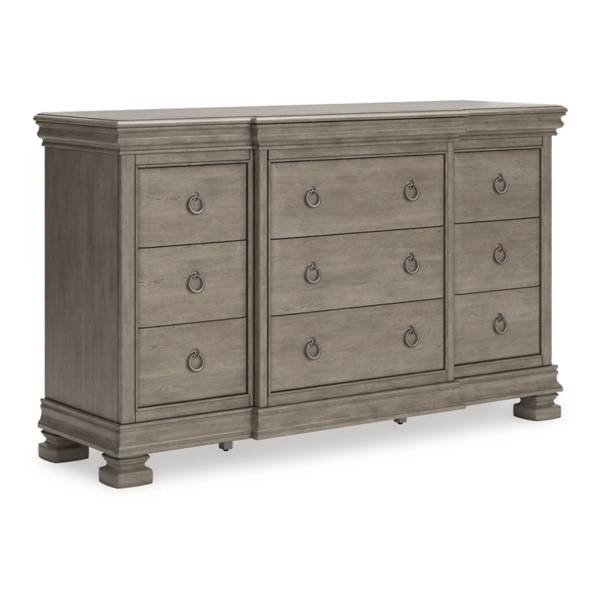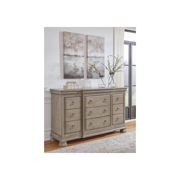 Elegant design and modern accents define the Lexorne Dresser.Spacious compartments and durable construction provide ample storage.Versatile functionality makes it a perfect centerpiece for any contemporary interior.
