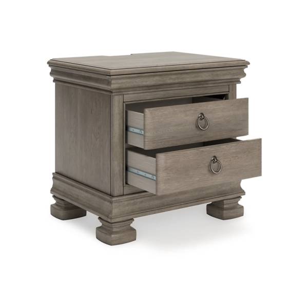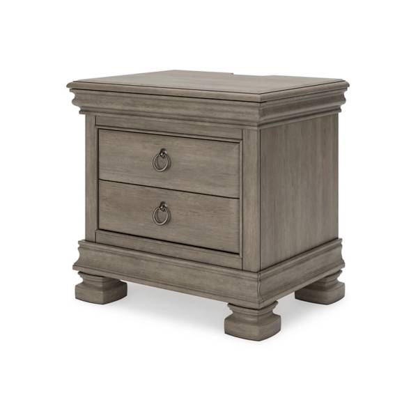 Elevate your bedroom with the timeless sophistication of the Lexorne Three Drawer Night Stand, available exclusively at Teletime. Drawing inspiration from the classic Louis Philippe style, this piece blends traditional elegance with modern practicality. Crafted from hardwood solids, birch veneer, and MDF substrate, it boasts a refined light gray finish that highlights the natural beauty of the wood grain, bringing a soft yet luxurious ambiance to your space.