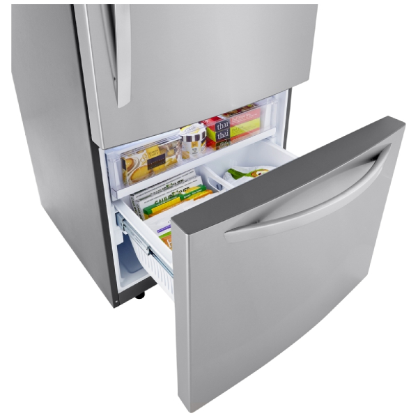 With a cavernous 26 cubic feet of space, the LG Bottom Mount refrigerator provides ample room for all your family's favorite foods, keeping them conveniently organized and within reach.