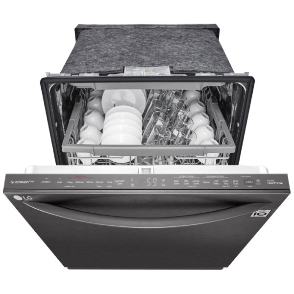 LG LDTS5552D Dishwasher, 24 inch Exterior Width, 46 dB Decibel Level, Fully Integrated, Stainless Steel (Interior), 9 Wash Cycles, 15 Capacity (Place Settings), Wifi Enabled, Black Stainless Steel colour TrueSteam