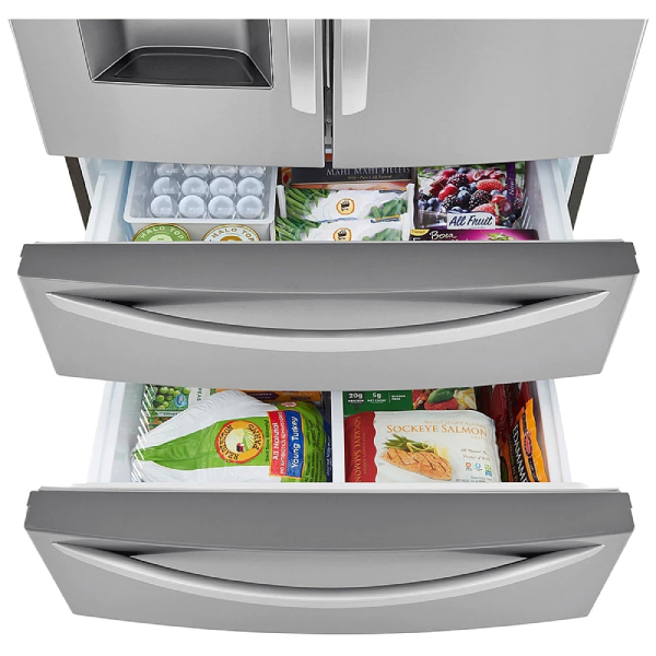 The standout feature of the LG LRMXC2206S is its temperature-controlled pantry, providing the perfect environment for storing meat, vegetables, and fruit to keep them fresh and crisp for longer periods. Additionally, the double freezer drawers offer ample space for frozen goods, making it an excellent choice for those who need extra freezer storage.