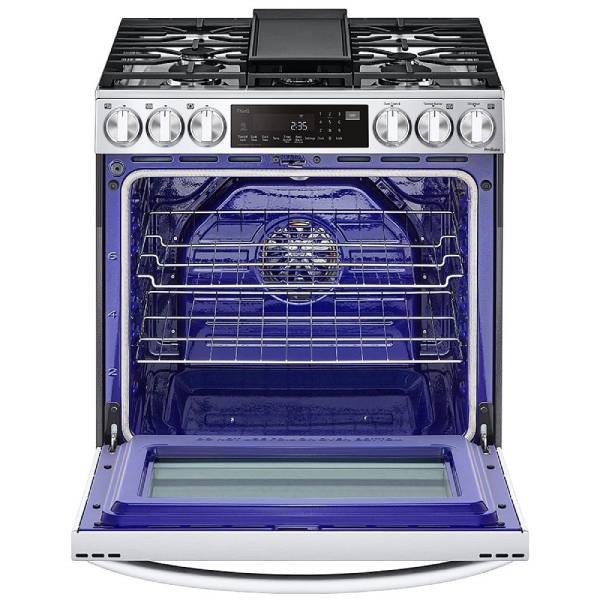 Easy Maintenance Cleaning your LG gas range is a breeze. The stunning blue interior not only adds a touch of elegance but is also resistant to burning and discoloration, ensuring that your dishes maintain their fresh taste over time.