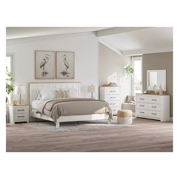 The Linnocreek King Panel Headboard offers a timeless touch of farmhouse charm, designed to transform your bedroom into a tranquil countryside retreat. Its two-tone design seamlessly blends rustic elegance with a clean, contemporary panel layout, bringing both style and serenity to your space. If you’re seeking a piece that effortlessly combines functionality and aesthetic appeal, this headboard delivers the perfect balance.