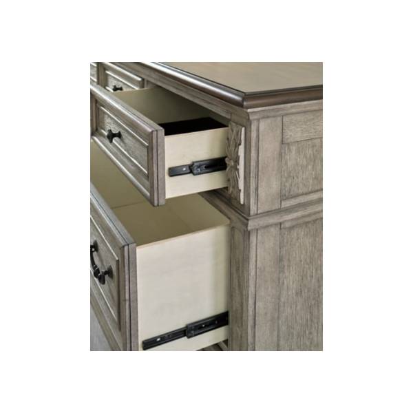 The Lodenbay Dresser and Mirror exudes timeless elegance with its vintage-inspired charm and refined detailing.Its spacious drawers provide practical storage while enhancing your bedroom's aesthetic appeal.Crafted with durability in mind, this piece offers both function and sophistication.