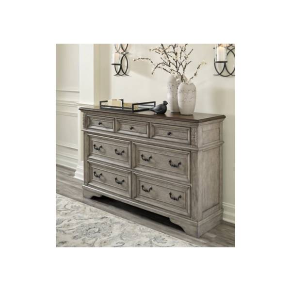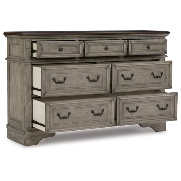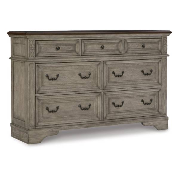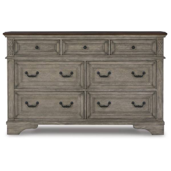Expertly crafted from acacia wood, birch and acacia veneers, engineered wood, and cast resin components, this dresser ensures durability and long-lasting quality. With seven spacious drawers, each designed with smooth-gliding functionality and dovetail construction, you’ll have ample room to organize your wardrobe and essentials effortlessly. Decorative corbels add an extra layer of charm, making the Lodenbay Dresser not just a storage solution but a statement of timeless style and craftsmanship for your home.