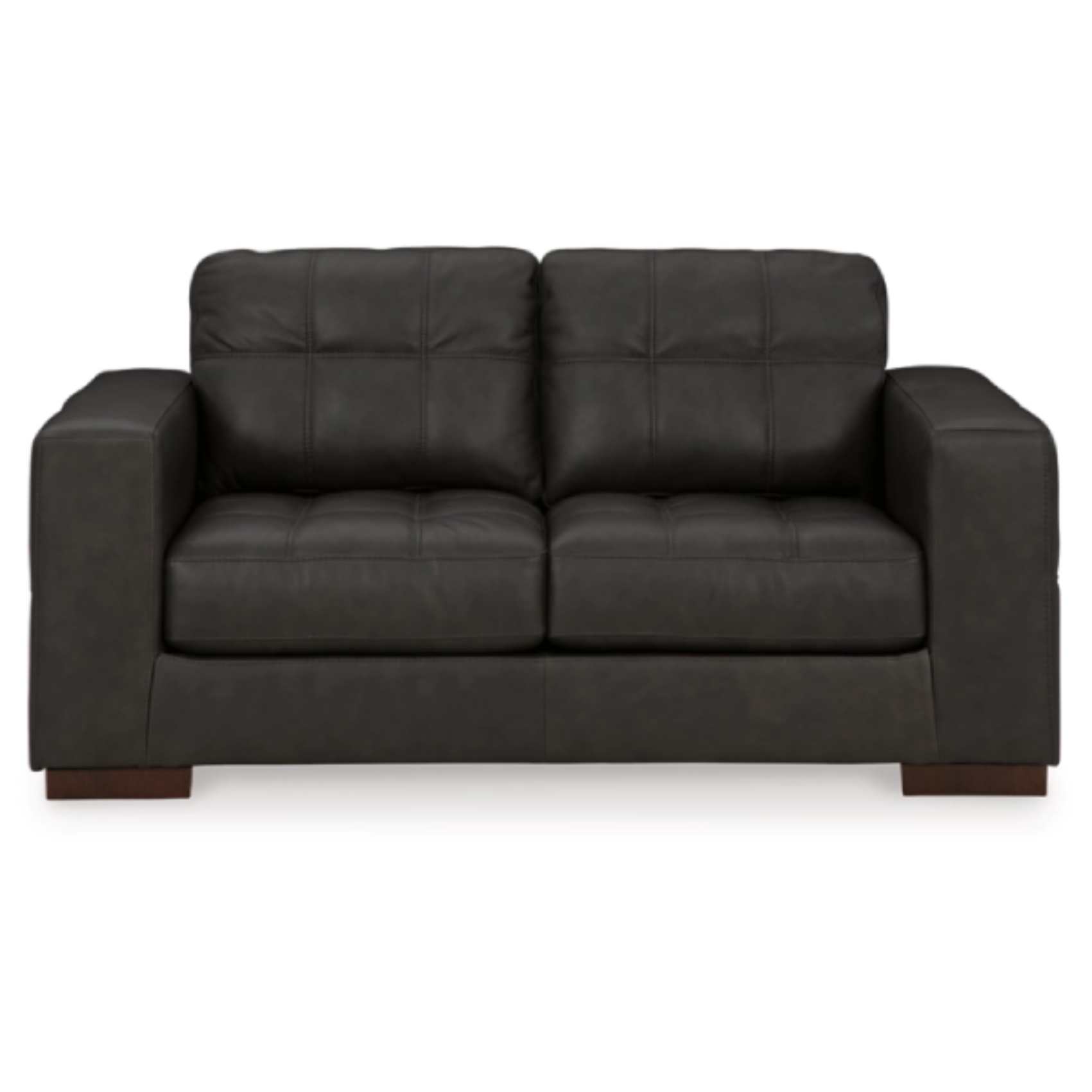 The Luigi Sofa, Loveseat, Chair, and Ottoman (SKU - PKG015818) set combines casual and contemporary styles with leather and faux leather upholstery. Its tufted details and masculine character provide a luxurious seating experience. This set is designed for those who appreciate everyday luxury in their living space.